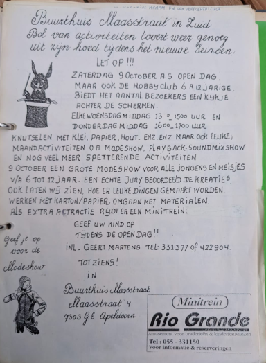 In deze sectie kunt u een diverse selectie van oude foto's ontdekken die zijn vastgelegd in de geschiedenis van de Maasstraat. Deze galerij weerspiegelt de gemeenschap en de evenementen die het buurthuis hebben gevormd. Laat u inspireren door verhalen die deze beelden vertellen.